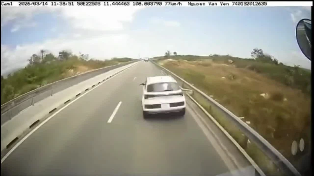 Khoảnh khắc xe tải tông ôtô 5 chỗ trên cao tốc Cam Lâm - Vĩnh Hảo,ngày 14/3. Video: Hoàng Sao
