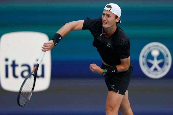 Korda trong trận thắng Alcaraz ở vòng 3 Miami Masters trên sân Hard Rock,Mỹ ngày 22/3/2026. Ảnh: Reuters