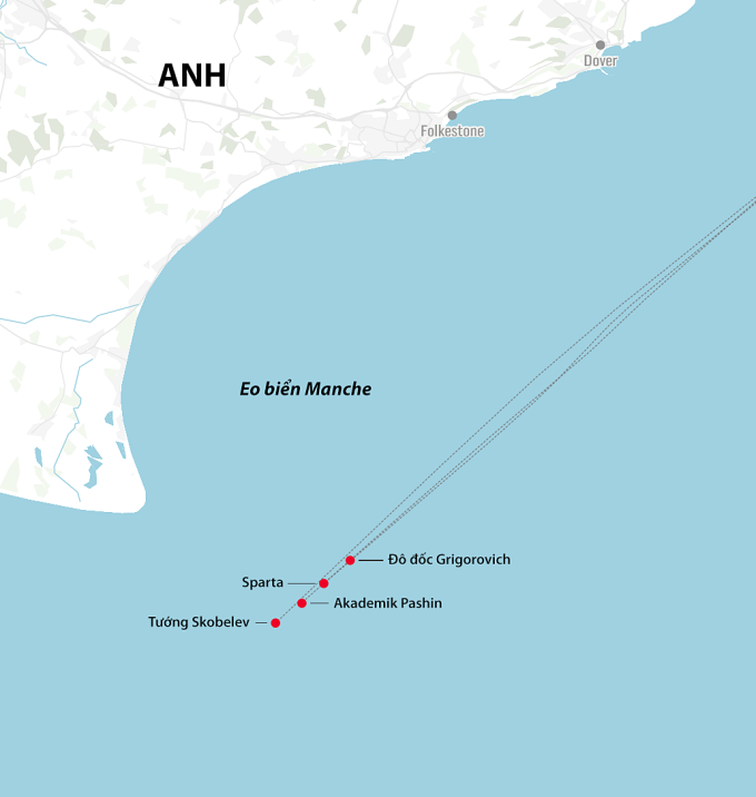 Thứ tự tàu đi qua eo biển Manche hôm 23/4. Đồ họa: Telegraph